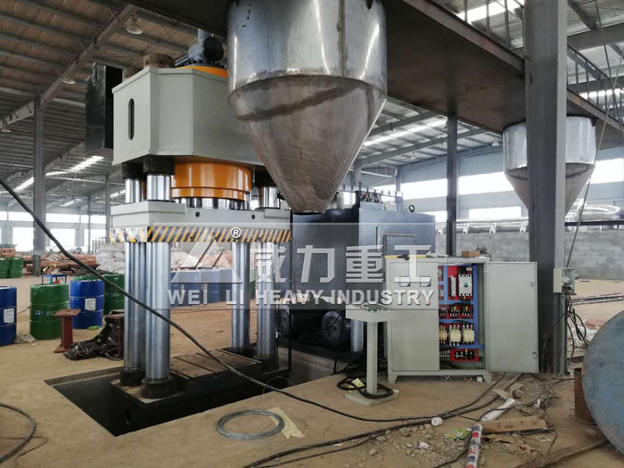 YW32-1000噸耐火磚成型液壓機(jī)是一種熱賣型號(hào),三梁四柱式結(jié)構(gòu),機(jī)身整體鑄件或者鋼板焊接,加大工作臺(tái)面采用加厚鋼板焊接確保了使用剛性,經(jīng)濟(jì)實(shí)用。機(jī)身由上橫梁、滑塊、工作臺(tái)、立柱、鎖緊螺母及調(diào)節(jié)螺母等組成,依靠四根立柱為骨架,上橫梁、工作臺(tái)由鎖緊螺母固定于兩端,將機(jī)器構(gòu)成一整體。耐火磚成型壓力是1000噸,是目前國(guó)內(nèi)熱銷的耐火磚壓型設(shè)備。關(guān)于耐火磚成型液壓機(jī)一次出產(chǎn)幾塊的問(wèn)題,山東威力重工技術(shù)部可根據(jù)您的加工要求,以及加工尺寸為您定做合適的液壓機(jī)產(chǎn)品,如果您有耐火磚成型液壓機(jī)采購(gòu)需求,或者對(duì)噸位以及型號(hào)有疑問(wèn), 歡迎您來(lái)電咨詢或直接來(lái)廠考察,廠家直銷熱線:0632-5850029 18306370898(同微信)