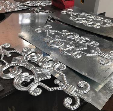 鑲嵌式壓花也稱金屬板材壓花,是金屬板材上,在模具的作用下,通過液壓機設備壓制成型的樣式。日常,我們常見的防盜門門板壓花就屬其中比較典型的案例。除此以外,一些藝術品,裝飾品上也需要一些花型,也是通過液壓機來生產完成。本文中介紹的是一款500噸四柱液壓機,用于壓制鑲嵌式花型,通過模具,一次成型。