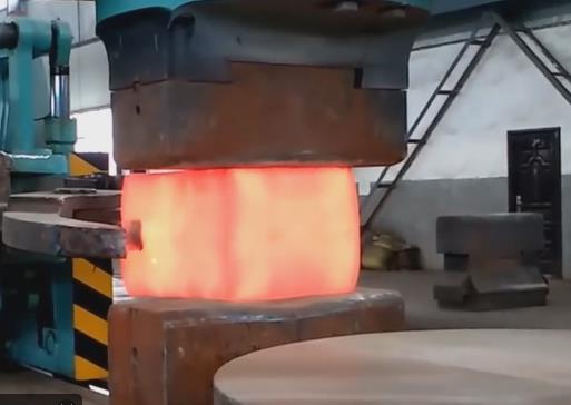 4、預熱,加熱爐設定溫度,噴鍛造脫模劑,將切割好的鋁棒置于加熱爐中進行加熱,達到所設定的溫度后,取出鋁棒,進行鍛造;