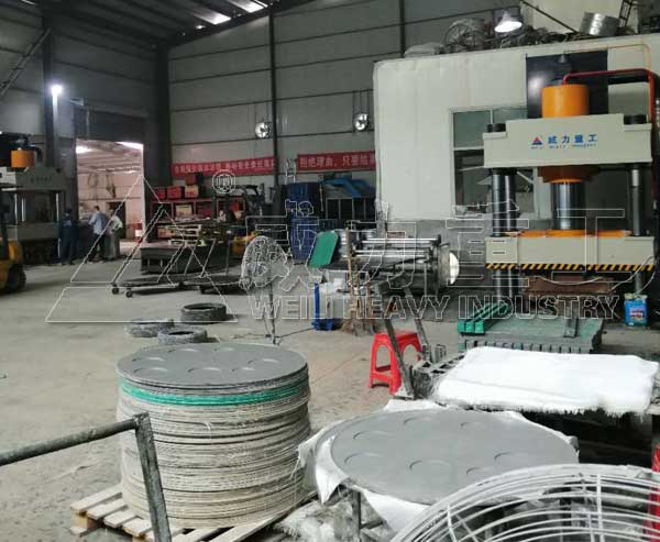 將玻璃鋼昂預(yù)浸料均勻的鋪在模具模腔內(nèi),然后進(jìn)行合模,模具和實(shí)密封之后進(jìn)行熱壓保壓工作,經(jīng)過一段時(shí)間的保壓后玻璃鋼、預(yù)浸料固化,500噸玻璃鋼防眩板模壓液壓機(jī)模具中取出。這種熱壓成型工藝具有高強(qiáng)度、高精度、質(zhì)量輕、受環(huán)境影響小、利于批量化等優(yōu)點(diǎn),適用于批量化、標(biāo)準(zhǔn)化的制件生產(chǎn)。500噸玻璃鋼防眩板模壓液壓機(jī)的模壓成型工藝是通過塑化、流動(dòng)并充滿模腔、樹脂固化等不同階段的反應(yīng)實(shí)現(xiàn)制品成型的。對(duì)液壓機(jī)和模具的要求非常高。